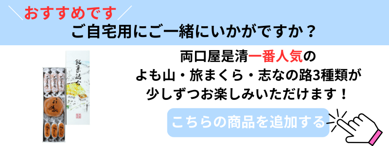 ※両口屋是清ではお客様のご希望のお届け日に合わせて、新しいお菓子を配送しております。